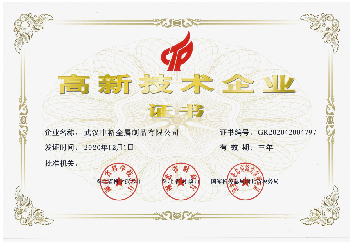 武漢中裕金屬制品有限公司(以下簡稱公司)成立于1996年8月,民營私人獨資企業(yè)。2010年8月投資1800余萬元,在前川油崗工業(yè)園征地20畝,新建5000平方米的生產(chǎn)車間和1100平方米的辦公大樓,2011年8月全部峻工投入使用。